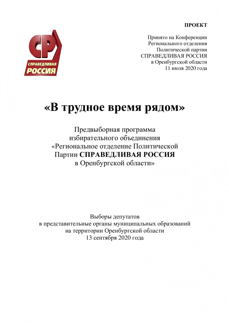 Предвыборная программа избирательного объединения "Региональное отделение Политической Партии СПРАВЕДЛИВАЯ РОССИЯ в Оренбургской области"