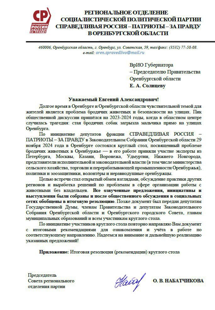 По инициативе СПРАВЕДЛИВОЙ РОССИИ 29 ноября 2024 года в Оренбурге состоялся круглый стол, посвященный проблеме бродячих животных в Оренбуржье – в его работе приняли участие эксперты из Петербурга, Москвы, Казани, Воронежа, Удмуртии, Нижнего Новгорода, представители исполнительной и законодательной власти, политики и зоозащитники, волонтёры и неравнодушные оренбуржцы.