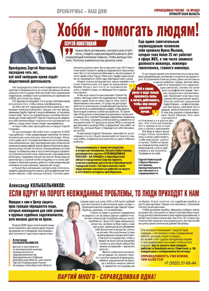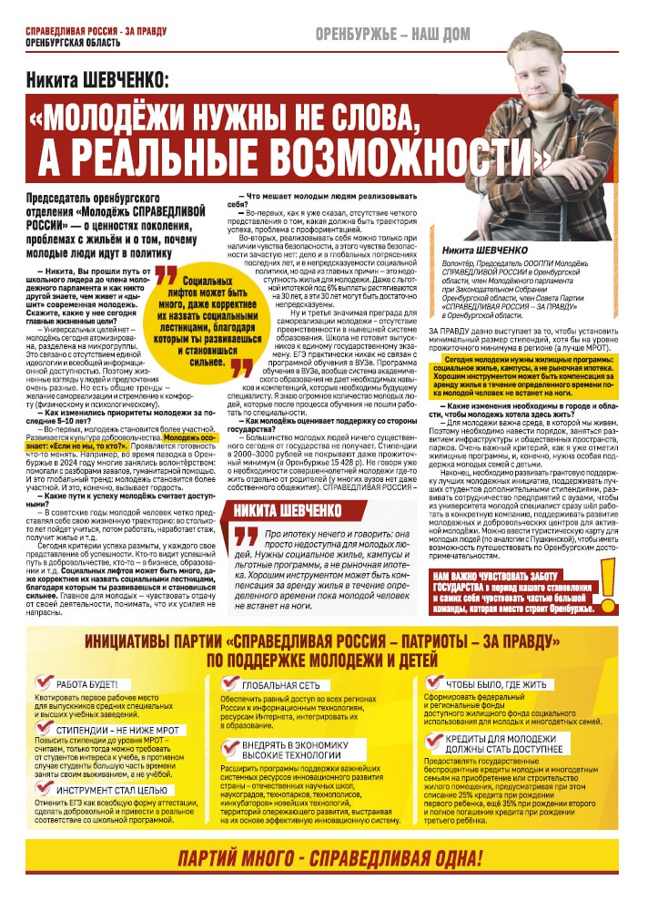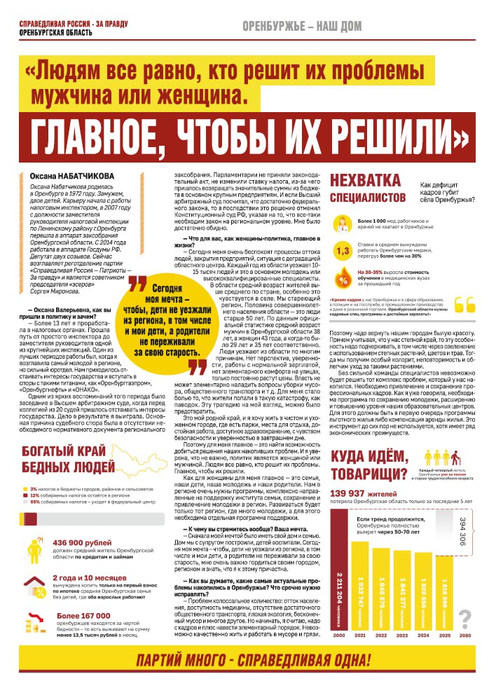 Партий много – справедливая одна! В Оренбурге вышла газета СПРАВЕДЛИВОЙ РОССИИ о нас, нашей работе и предложениях