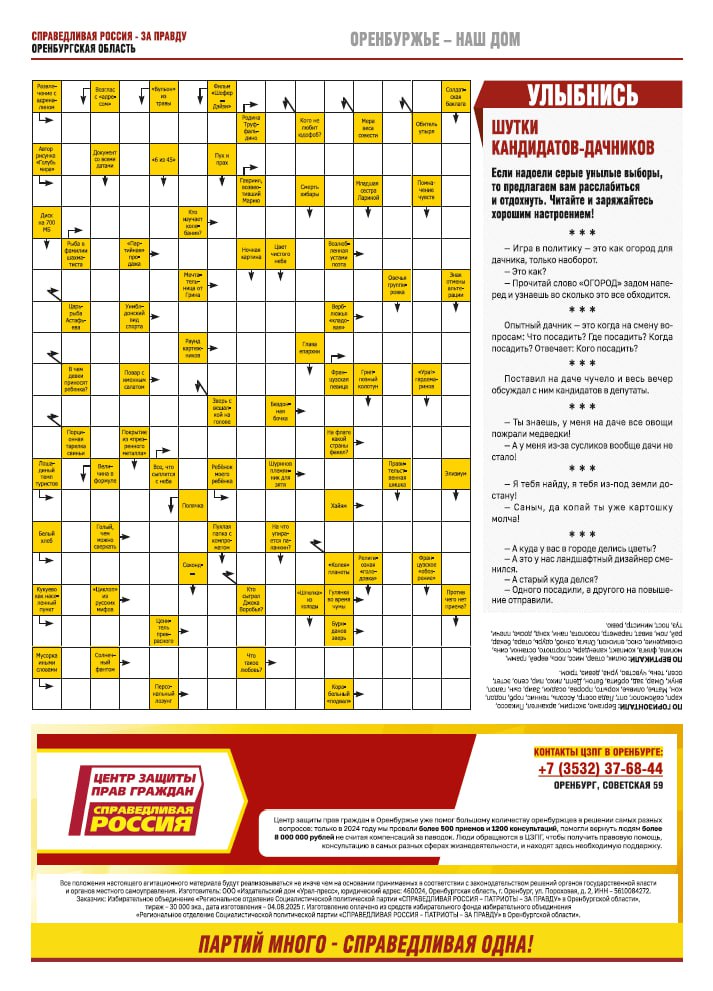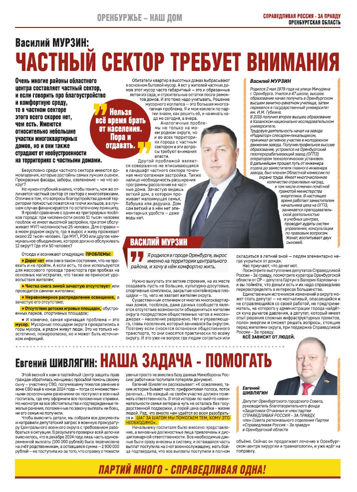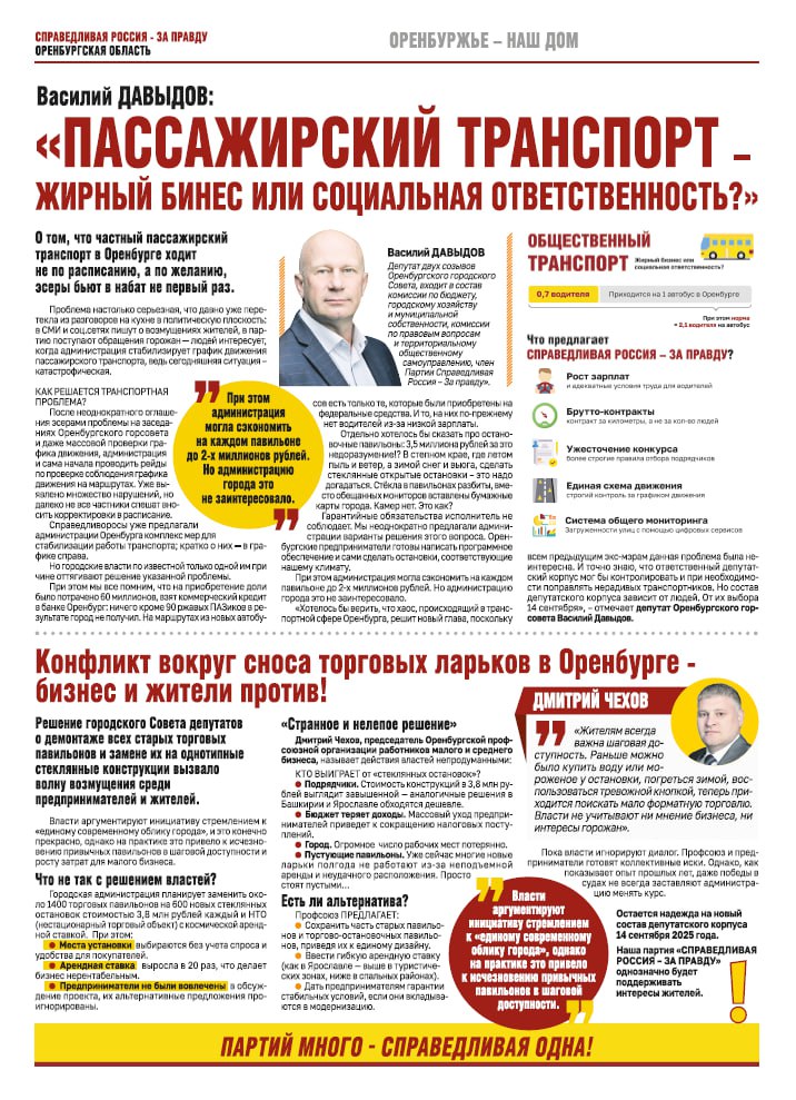 На страницах информационного издания – истории жителей, инициативы партии, аналитика и инфографика о реальном положении дел в Оренбурге... ну и, конечно, полезные контакты, кроссворд и немного юмора