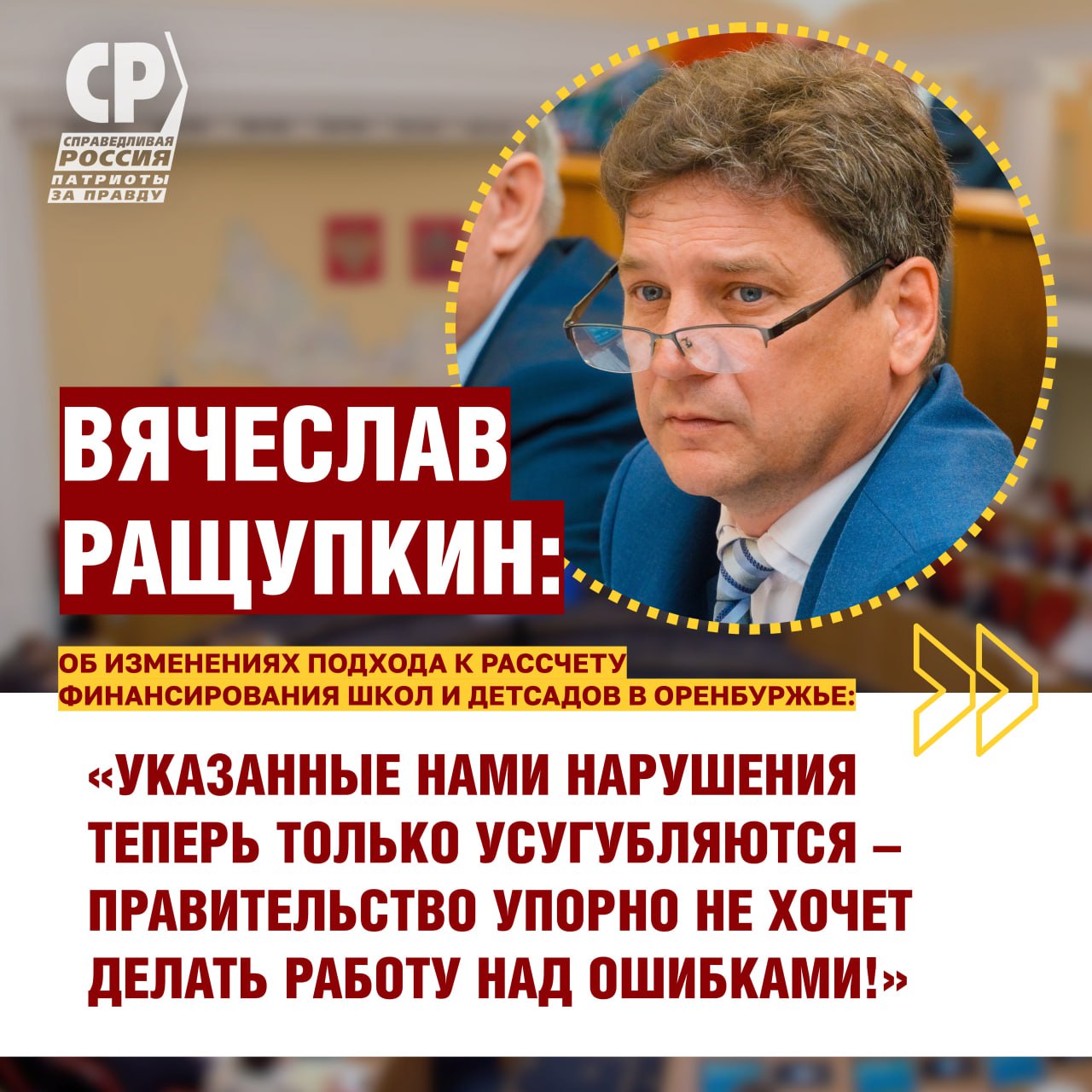 "Указанные нарушения теперь только усугубляются. Правительство упорно не желает делать работу над ошибками – комментирует Вячеслав Ращупкин и депутат Орского горсовета – возможно, потому что это кому-то удобно: такая система позволяет поощрять лояльных и склонять школы и детсады к, скажем так, нужным решениям"