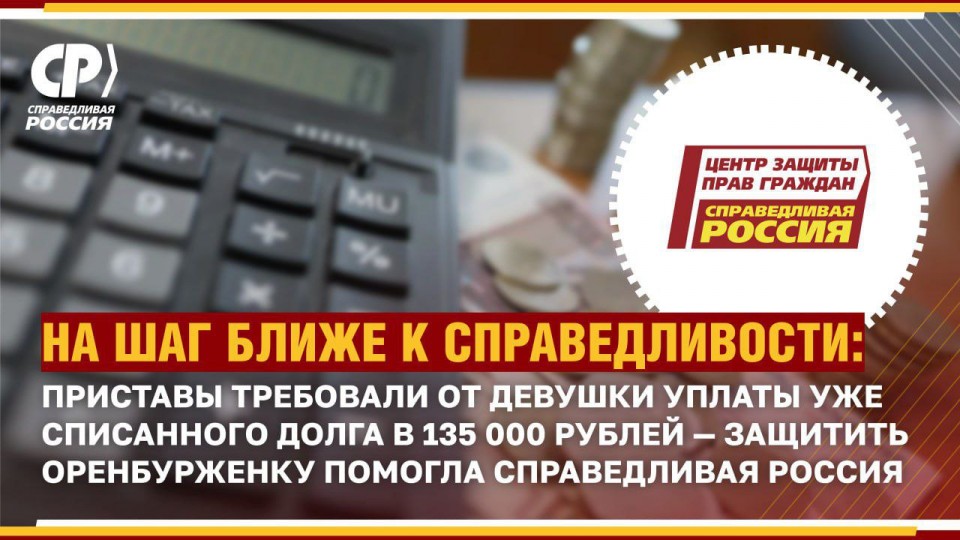Приставы требовали от девушки уплаты уже списанного долга в 135 000 рублей – защитить оренбурженку помогла СПРАВЕДЛИВАЯ РОССИЯ