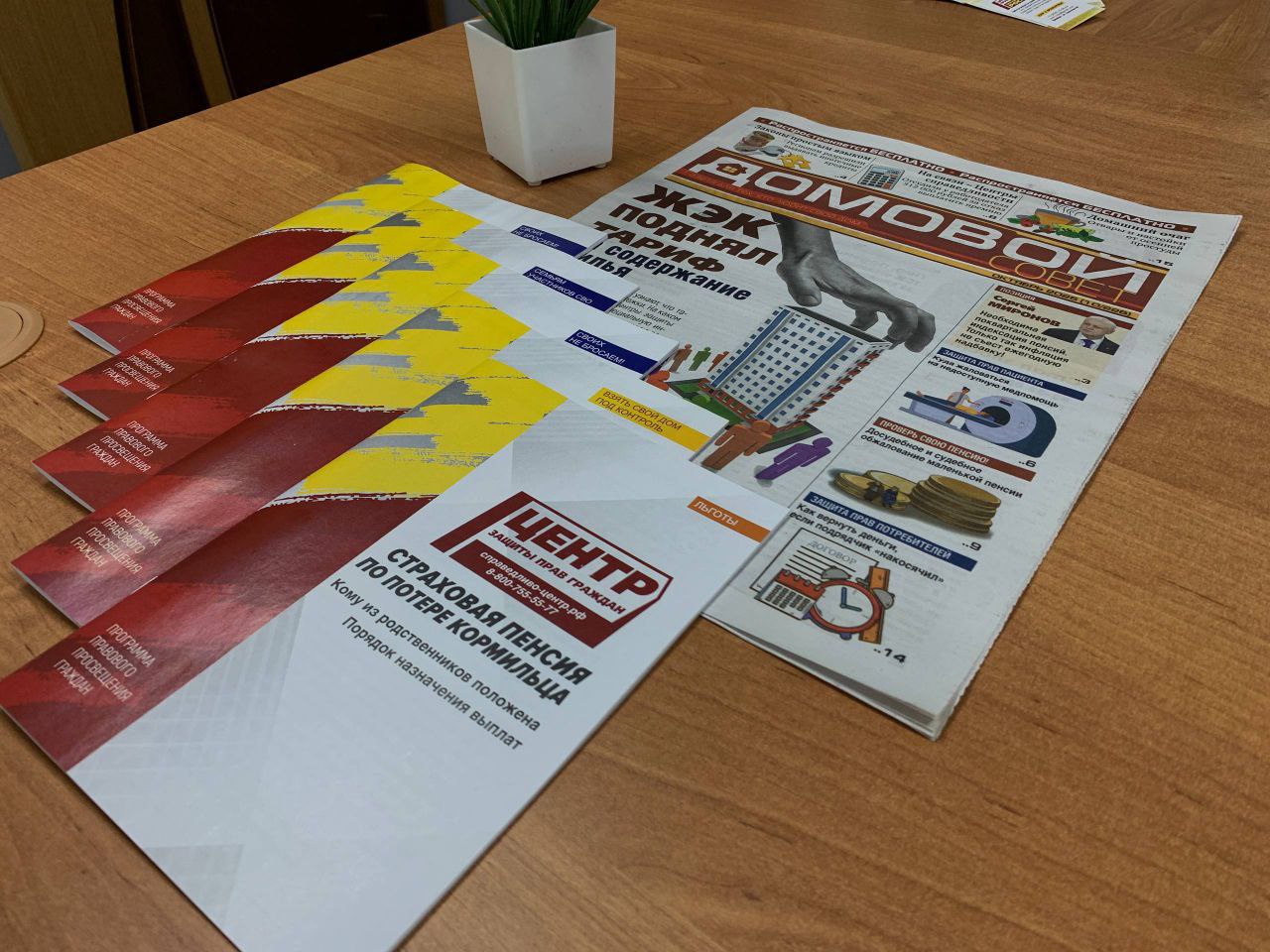 В штаб СПРАВЕДЛИВОЙ РОССИИ поступили новые брошюры от Центра справедливости и газета "Домовой совет"