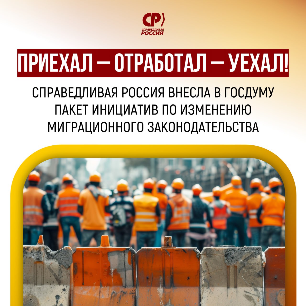 Приехал – отработал – уехал! Депутаты фракции СПРАВЕДЛИВАЯ РОССИЯ во главе с Сергеем Мироновым внесли в Госдуму пакет законопроектов по изменению миграционного законодательства