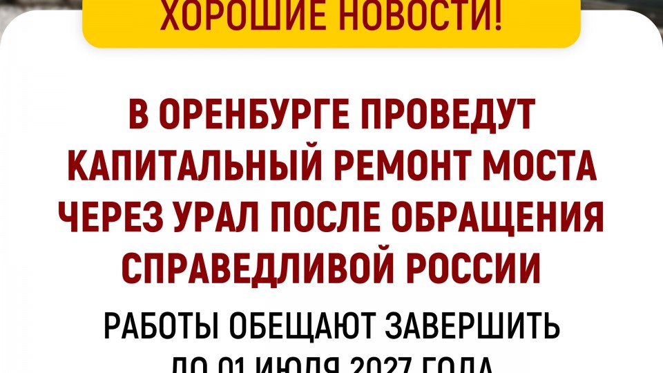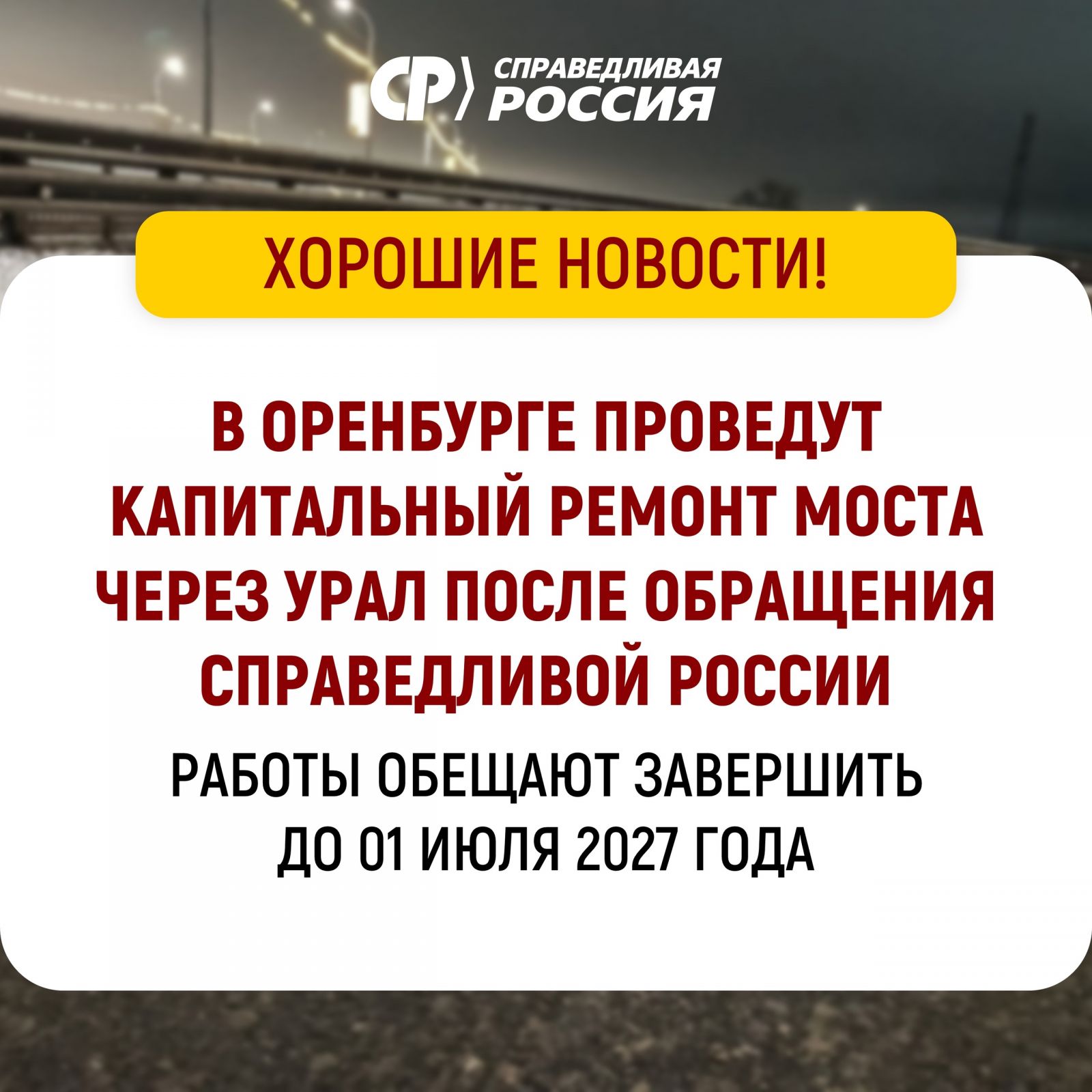 В Оренбурге проведут капитальный ремонт моста через Урал после обращения СПРАВЕДЛИВОЙ РОССИИ – работы обещают завершить до 01 июля 2027 года